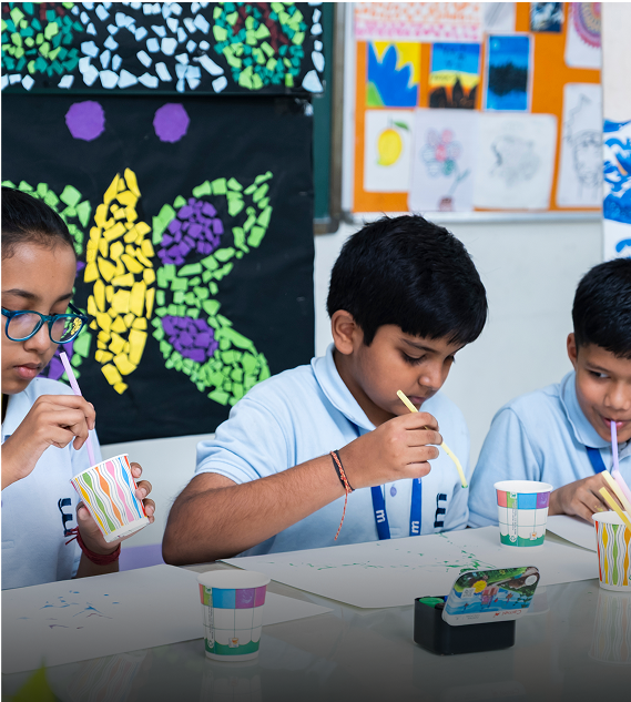 Art plays a key role in students’ holistic growth. In Pre-Primary, children engage in daily art and craft activities. In the Primary years, they attend structured art sessions twice a week to refine their skills and creativity. From Grade 6 onwards, students have weekly art sessions, offering a space for self-expression and relaxation alongside academics.